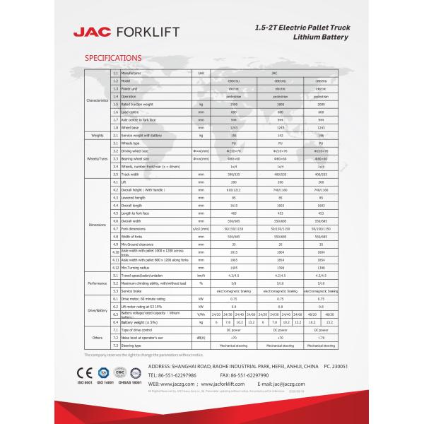 | Characteristics | 1.1 | Manufacturer | Unit | JAC | |||